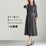 洗えて動けるワーママワンピ【手洗いできるハイストレッチジョーゼット】美フレアワンピース
