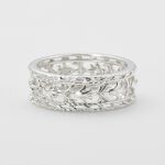 刺繍のような細工が施されたエレガントなリングです。チューリップの花の細工だそうで、繊細でステキです。指元が一気に華やかになります。太さもあるのに派手過ぎません。着け心地は安定感があります。シルバーはカッコいい系のしか持っていなかったので、購入して良かったです。キラキラして本当にきれいです!