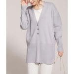 マキシスカート、デニムなど、ワンマイルウェアに合わせやすく、お袖もゆったりなのでパフスリーブの上にも羽織れます。単体で見ると地味なので、娘からはおじさんカーデガンと言われましたが。