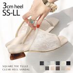 チュールクリアが涼しげで、今年らしくてかわいいです。3センチのヒールは歩きやすく、普段のサンダルは21.5で、SSがぴったりでした。