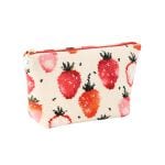 思ったより大きいサイズですが化粧品もいっぱい入るし、イチゴ柄にパールのファスナーも可愛いです。