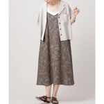 線画フラワーの柄と色味が落ち着いており大人が着られるAラインのキャミワンピースです。
