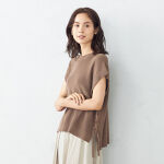 ブラックを購入。手持ちの大きい襟の白ブラウスに合うベストを探していました。サイドの編み込みがオシャレです。肩までしっかりカバーするタイプで一枚で着ても様になります。