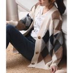 アイボリーだと黒・茶・灰の4色が入っているので、いわゆるベーシックカラーで普段のコーディネートをしている方には何にでも合わせられる重宝するカーディガンだと思います。