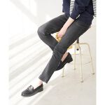 ブラックジーンズを探していたので購入。ハイライズ過ぎず、座り仕事でも苦しくなくて良いです。160cmで足首が少し出る位の長さです。