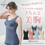 ブラトップ的なものはやめたおいた方がいいという意見も知りつつどうしても楽なので、せめてもということでこちらのを使っています。肌触り柔らかで、寝てもあまりずれません。日中着てもブラと遜色ないシルエットです。