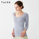 綿100なので下着と言うよりTシャツのような感じに近いです。綿素材なのでエアリズムのような伸縮性は低いですが肌触りは良いです。バレエネック程の襟ぐりです。