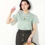 光沢のある生地でカジュアルにもキレイめにも着こなせます。