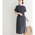ネイビーと交換したグレー系が届きました。色が全くグレーではなくて、薄めのベージュです。グレー系と謳う必要性なし!とはいえ、綺麗な色なのでこのまま購入します。ウエストのゴムが結構しっかりしているのと、フロントのボタンがウエスト位置までしかないのとで、着脱が大変ですが、着てしまえばラインは綺麗です。袖口から裏の縫い代が相変わらず垂れて見えてしまいますが、そこは自分で纏り縫いをして凌ごうと思います。