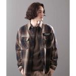 派手過ぎず地味にならないアクセントロゴがポイントのチェックシャツ。