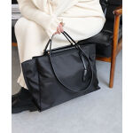 去年、同じデザインの小さ目を購入。ポケットの多さと生地のハリがあるところが使いやすかったため、今回は仕事用に買いました。写真で見ると、A4サイズのファイルを出し入れするときにファスナーが引っかかって邪魔になるか心配でしたが、バッグ本体の厚みがあるためか、それほど気にならず良かったです。底がしっかりしているので、スマホ2台、ipad、A4の書類を多数入れても変形なしです。