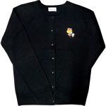 水森亜土先生のイラストは小さい時から大好きで、その刺繍の付いたニットカーディガンが何とも愛らしくて購入しました。娘と共有して着ています。肌触りもよく着心地も抜群です。厚みも丁度良く、あたたかいです。色味も落ち着いたカーディガンなので汎用性もあります。