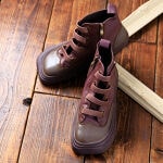 冬ブーツのようにガッツリしてなくて春先でブーツを履いても浮かない軽そうなブーツを探しており、こちらを見つけました。個性的なお色にも惹かれましたが、オーソドックスな茶色にしました。大きさもちょうどよく、ハイカットのスニーカーのような感覚です。お色も無難なお色にしておいて正解だったと思います。