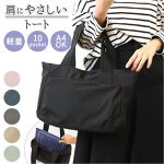 とても軽いです。肩の負担がかなり減りました。ただ素材が滑りやすく肩下げ部分が落ちやすいです。外側の肩下げ紐を下にするようにして少し緩和されますが、紐が落ちないように気をつけると肩が凝ります。また生地がやわらかく中の荷物が動きやすいです。