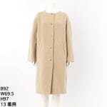 シンプルでノーカラーの黒いコートを探しておりました。まさに欲しかったコートです。13号ですが、細身のシルエットなので着ぶくれせずに、着痩せして見えます。生地も滑らかで高級感があります。しかもとても安く購入できて大満足です。縫製もとても良いです。