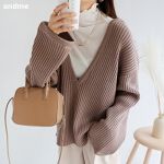 深Vネック 長袖 リブ ニット トップスの口コミ一覧