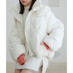 ダイヤ柄キルトが良い感じで、ボリュームがあるけれどショート丈で、すっきりしていて温かいです。