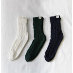縄編みの模様がぶ厚く、つま先の縫い目もぶ厚い。