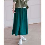 鮮やかなグリーンですが、合わせるもの次第で落ち着いた感じにもなりそうです。しわになりやすいのが、難点です。