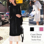 インナーのキャミワンピは思ったより短かかったのですがとても伸びが良く使い易いです。上のニットは夏以外の季節に向きますが普段使いにお安くて気に入りました。