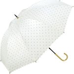 大きめな日傘がほしくてこのサイズを選びました。横に並べば2人入れるくらいの大きさです。どんなシーンでも使えそうな白地に黒ドットの上品な日傘です。