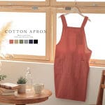 H型のエプロンで、着た瞬間はちょっと窮屈なような感じもしたのですがそんなことはなく、ボタンも2つあるので調整できました。生地も柔らかく、着心地もいいです。