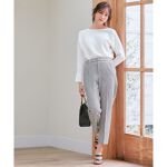 普段パンツはSサイズを購入するのですが、タックインしたかったためウエストサイズを見て2を購入しました。ウエストは理想的だったのですが、腰や腿がダブついてしまい、柄の影響もあってパジャマやリラックスウェアの様な印象になってしまいました。私が着るとラインが仕事着の感じじゃ無くなってしまうので返品させて頂きました。