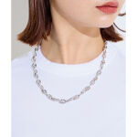 首の太いわたしでも、サイズ感がちょうどいいです。形はカジュアルですが、ゴールドで華やかさもあり、服装を選ばずに合わせられそうです。