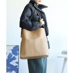 SALEで購入できるカラーが限られる中からグレーを選択しました。ベージュに近い上品な色味で気に入っています。材質は合皮にしては滑らか、バックの底に底鋲が打ってあるので中に物を入れれば自立するのが嬉しい。