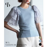 異素材の掛け合わせ、袖のシフォンのふんわりデザインが大人可愛いです。