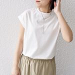 普通のカットソーですが、首周りが広くないので小柄な人も着やすいシルエットと思います。