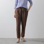 サラッとした肌触りで今の季節にちょうど良いです。股上がとても深く、ウエストよりだいぶ上ですが、それを利用して丈を調整しています。