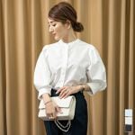 しわになりにくい素材でかっちりしています。袖にかなりのボリュームがあるのでボトムはフィットするものを選んでバランスを整えるといいかも…。