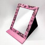 旅行用に手鏡が置いていないホテルもあるので、購入しました。化粧するときは、机のうえに鏡をおいて、座って、時々鏡を持ったりしながらすすめます。 表面は合皮って書いてあるけど、紙なのかな!?って思うくらい軽いので、旅行用にとても良いと思います。