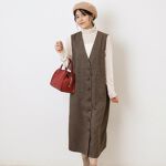生地が秋冬向けでお値段の割にお得感がありました。ワンピースとしてもインナーで雰囲気が変わりますし、ジレとしてもデニムと合わせたてカジュアルにしたりと今からどんな風に着ようか楽しみです!