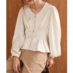 ペプラムの形が好きなのですが、タックの入り方で生地のたるみが好みではなく、交換しようにも個体差が激しそうなので結果的に返品しました。