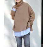 軽くて暖かく、チクチク感が気にならない柔らかい肌触りです。タートルと袖のリブとストンと落ちるデザインが可愛くて、パンツにもスカートにも合います。インナーに長袖を着ると袖がダラッと落ちてきにくいかなと思います。毛はそれなりにつきます。