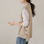 全体的にゆったりとしているのでSサイズでも良かったかなと思いました。デザインと色味が気に入りました。まだ寒い日もあるのでタートルネックの上に重ねて着ようと思います。