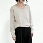 ボートネックよりVネックの方がすっきり見えます。但し、画像用のようなたっぷりした長めの袖ではなく、身長168cm手足が長めの私には袖が足りない。sale価格で購入してるのでワンシーズン用として着ます。