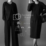 肩まわりもゆったりしていて、ウエストゴムなので多少の体型の変化が起きても問題ないのも嬉しいです。ブラックフォーマルとしてだけでなく、インナーや小物使いで色々なシーンで着用できそうです。