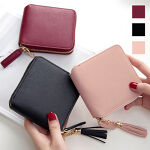 二つ折りでコンパクトです。バックに入れていてもじゃまにならないサイズです。小銭は少ししか入りませんが、ファスナーで閉まっているのでかばんの中にいれていてもおちません。色も女の子らしさがあります。