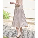 キラキラとした生地でした。かわいい。サイズは迷いましたが、普段1なら1でちょうど良いです。ウエストは後ろのゴムのみで、ファスナーもないですが履きやすいです。着るのが楽しみです。本当はベージュも欲しいです。