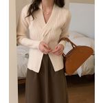 思ったより厚手であったかそうです。あまり見ないデザインなので買ってよかったです。Xになるので、着るだけでウエストマークできるのがいいです。