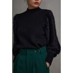 SとMと迷いましたがMを買って正解でした。ほどよいゆとりでパンツにインしてもタボつかず、すっきりした着こなしができます。シャギースリーブがとても可愛くてオシャレ感がでます。買って良かったです。