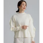 袖のフリルが可愛いです。 ちょっと重めの編み地です。