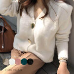 ボタンが特徴的で可愛いです。前を開けて着用するとボタンの重みで形が崩れてしまうので、着用する時は閉じないとダメです。
