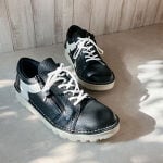 ブラック✕アイボリーを購入しました。本皮のスニーカーを探していたので希望通りでした。デザインも素敵で、カラーがブラックベースにアイボリーがアクセントになっているので黒・白のコートやパンツに合わせ易いです。足先幅もゆったりしているので、タイツ・ソックスの時期も大丈夫。