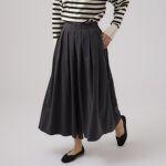 ピーチ起毛というだけあって、素材的には秋冬用。ただボリュームがあり裾が広いので冬は、タイツ等の防寒必須かも。骨盤周りが気になる体型なので、普段はモノによってMかLを着用してますが、これは履くときに骨盤で少し引っ掛かるくらいで、ウエストは問題無かったです。シンプルなデザインなので、いろいろ使い回しできそうです。