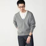 デザインはシンプルで、深めのVネックとなっています。サイズはやや大きめなので、カットソーをインナーに着こなすことがお勧めです。