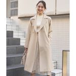 154センチでちょうど膝下くらいの丈感です。ダブルボタンのトレンチコートでベルトひもがついてるので結んで可愛くも着られます。この形だと開けても閉めてもスッキリ着こなせるので重宝しそうです。